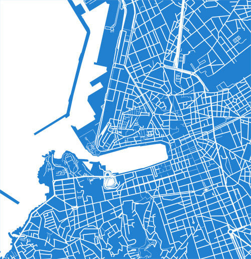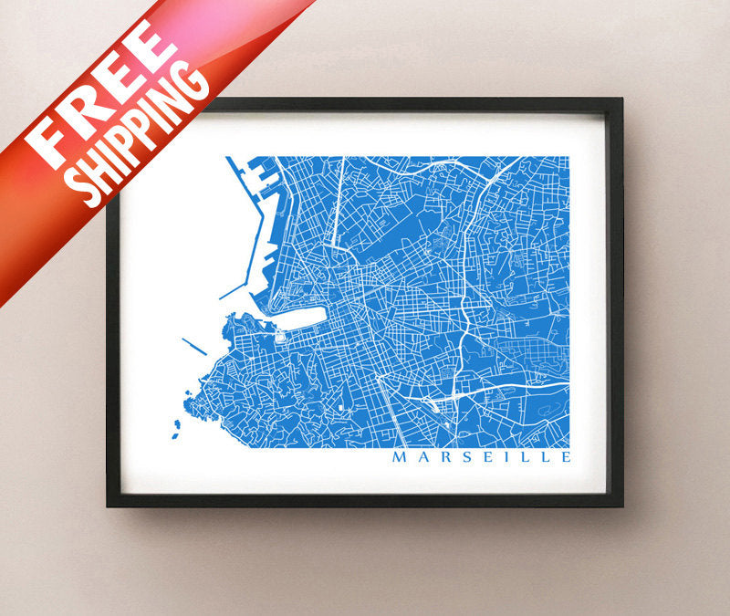 Map of Marseille, France. Example colour shown is English Cerulean.