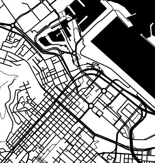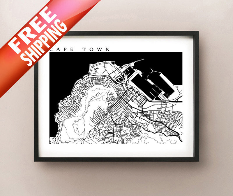 Mapa en blanco y negro de Ciudad del Cabo, Sudáfrica.