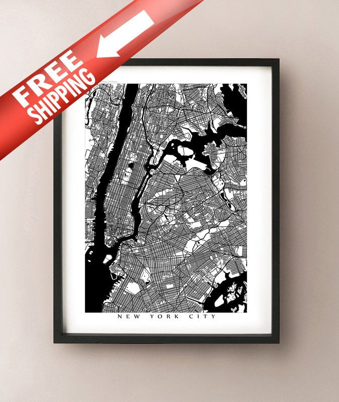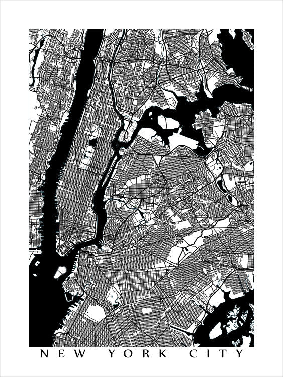 Mapa en blanco y negro de la ciudad de Nueva York, Nueva York.