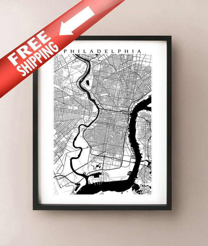 Mapa en blanco y negro de Filadelfia, Pensilvania.
