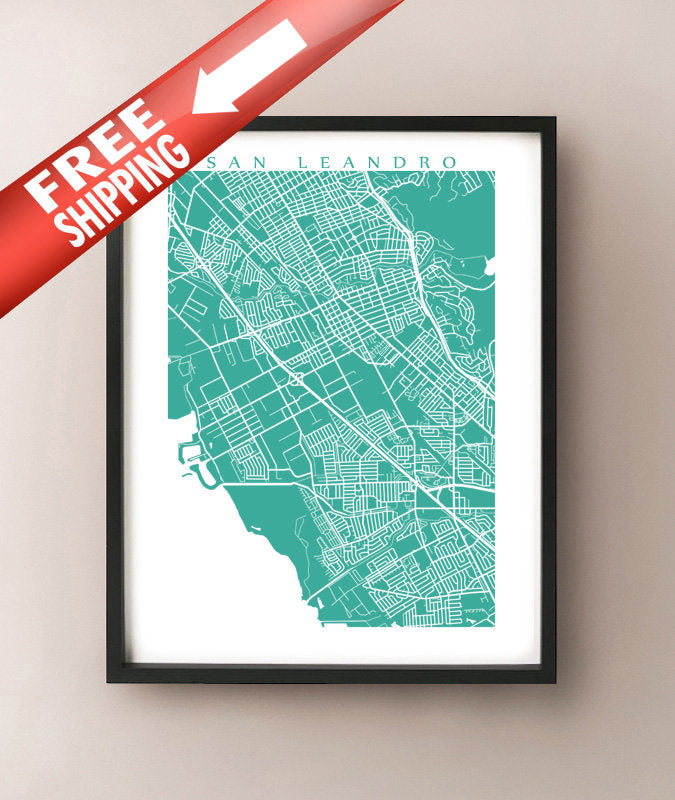 Mapa en blanco y negro de San Leandro, California.