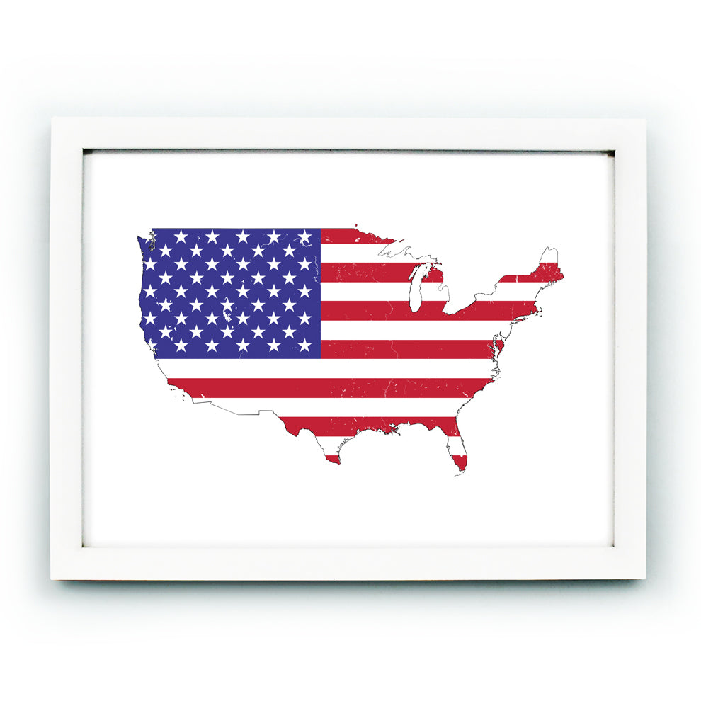 Bandera americana con la forma de los Estados Unidos de América.