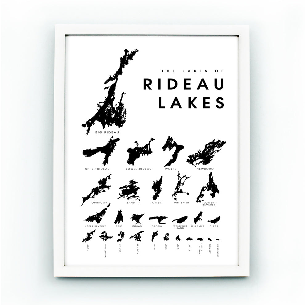 Bajo, Bellamys, Benson, Big Rideau, Claro, Crosby, Cuervo, Indio, Pequeño, Little Crosby, Somorgujo, Lower Beverly, Lower Rideau, Molino, Mosquito, Barro, Newboro, Opinicon, Nutria, Arena, Tommy, Troy, Upper Beverly , Upper Rideau, Westport, Westport Sand, Whitefish y Wolfe.