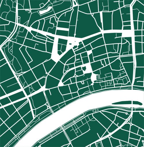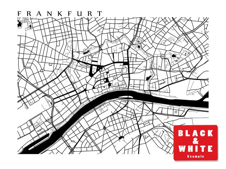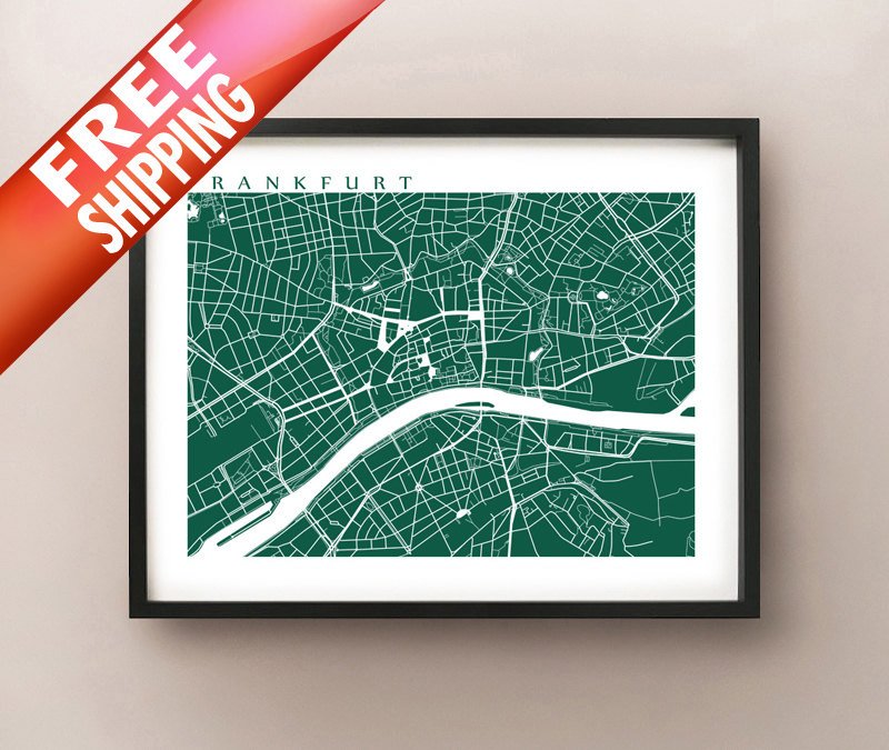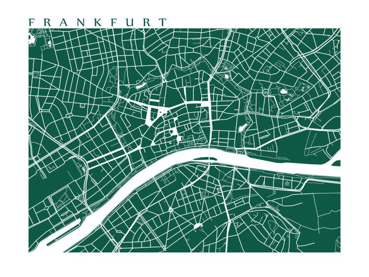 Mapa de Frankfurt am Main, Alemania. El color de ejemplo que se muestra es el Viridian español.
