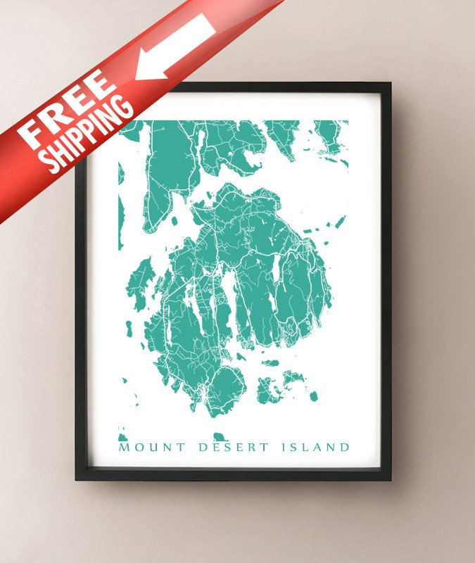 Mapa de la isla Mount Desert, Maine, Estados Unidos. El color de ejemplo que se muestra es Muzo Emerald.