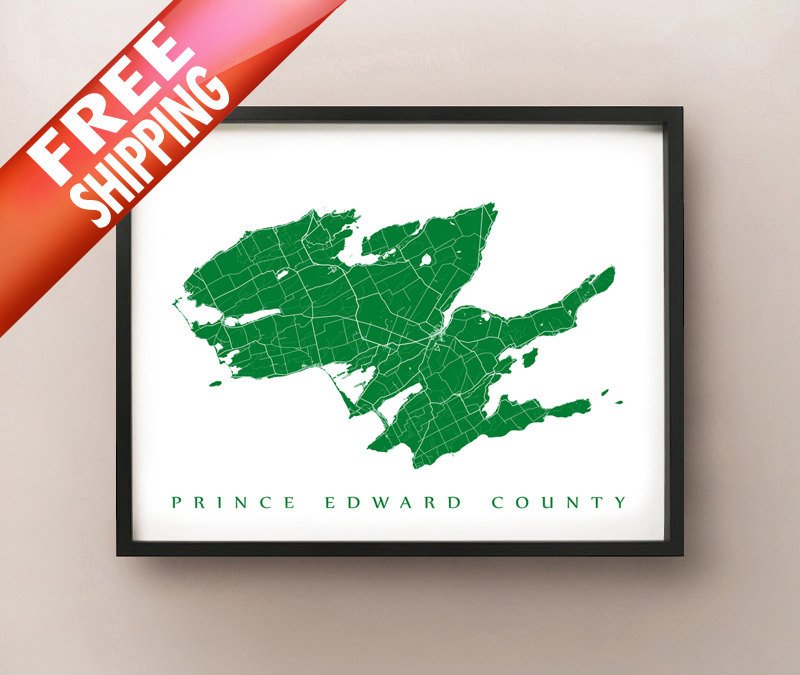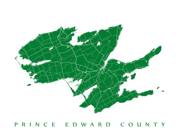 Mapa del condado de Prince Edward, Ontario, Canadá. El color de ejemplo que se muestra es el cedro de California.