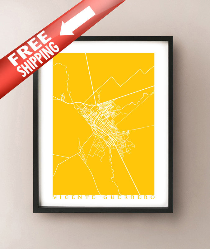 Mapa de Vicente Guerrero, México. El color de ejemplo que se muestra es el Taxi de Nueva York.