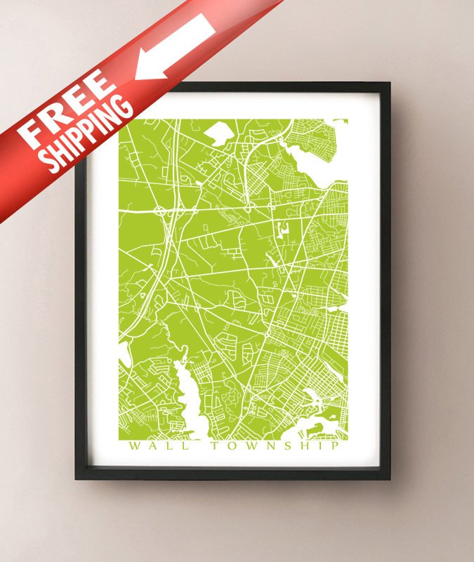 Mapa de Wall Township, Nueva Jersey, Estados Unidos. El color de ejemplo que se muestra es Arctic Moss.