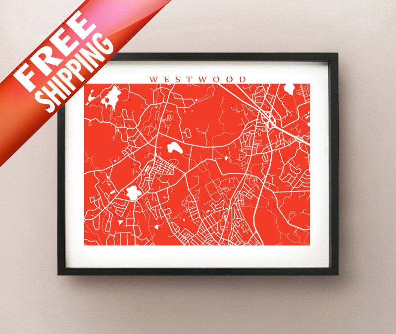 Mapa de Westwood, Massachusetts, Estados Unidos. El color de ejemplo que se muestra es la alfombra roja de Cannes.