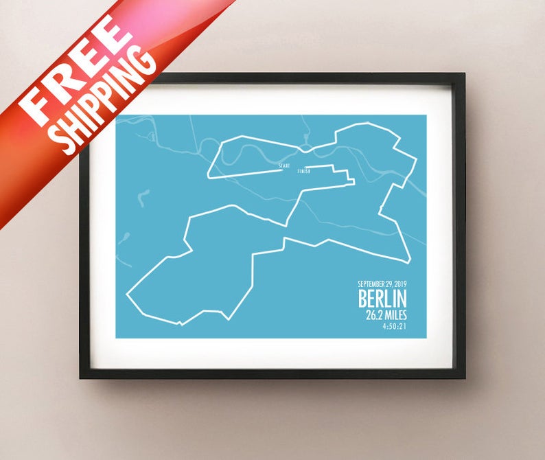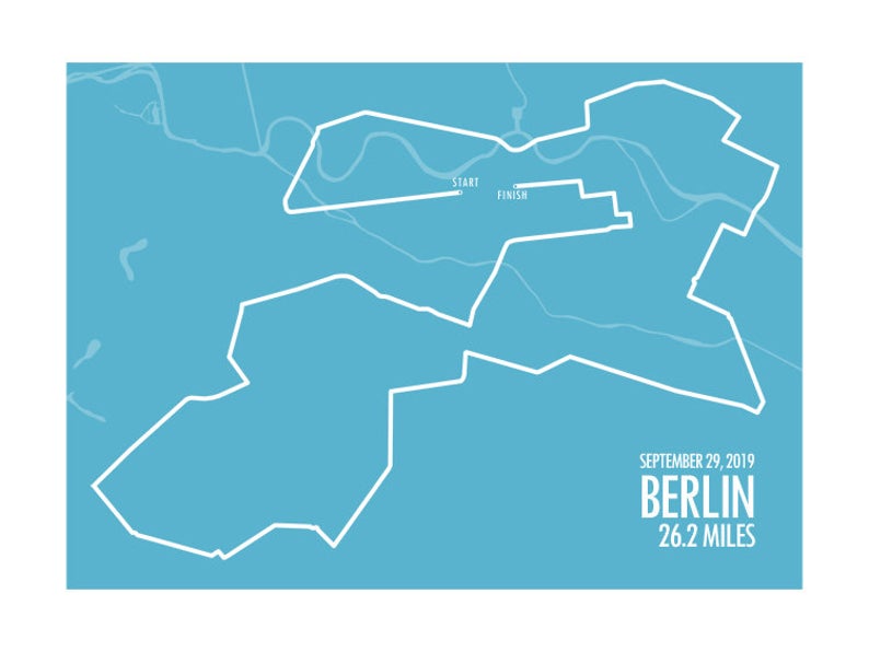 Mapa del Maratón de Berlín 2019. Los colores de ejemplo que se muestran son Caicos Caribbean, Amazon Rainforest y Mohave Sand.