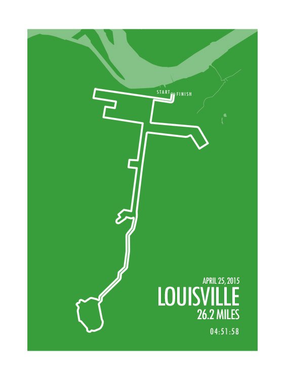 Mapa del maratón del Louisville Kentucky Derby 2015. El color de ejemplo que se muestra es Irish Fields.