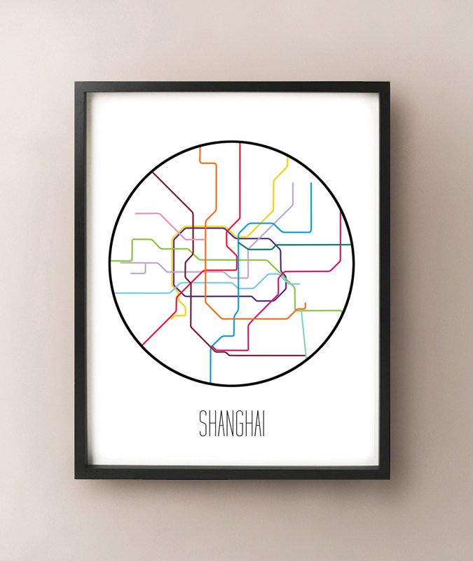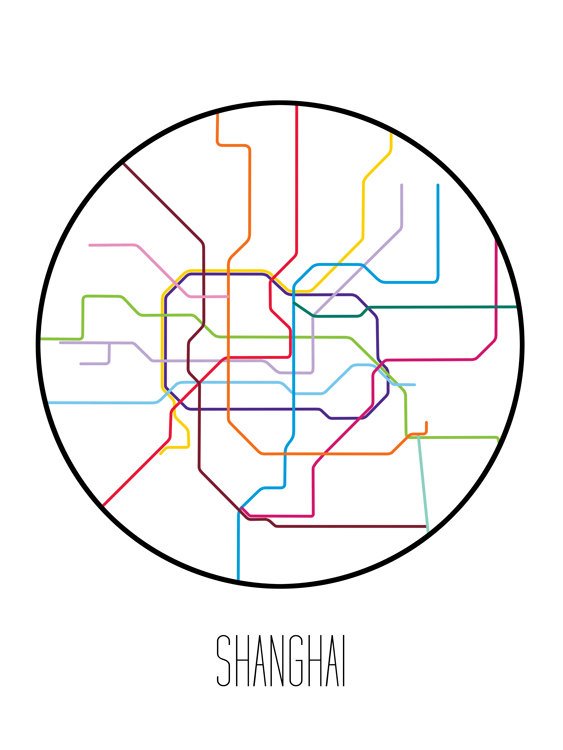 Mapa del metro minimalista de Shanghai, China.