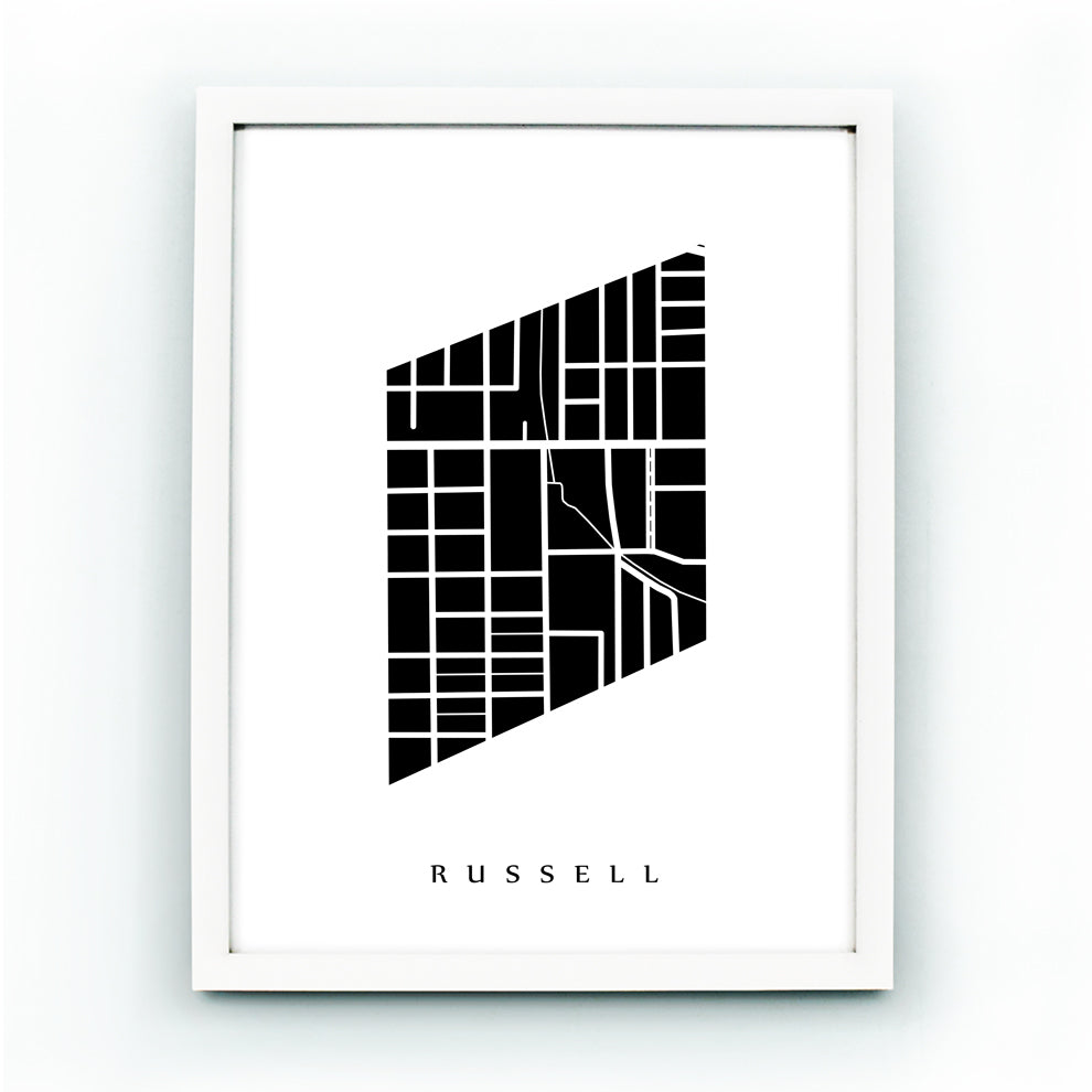 Russell, mapa del barrio de St. Catharines. El color de ejemplo que se muestra es el cielo nocturno antártico.