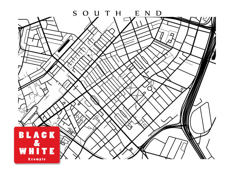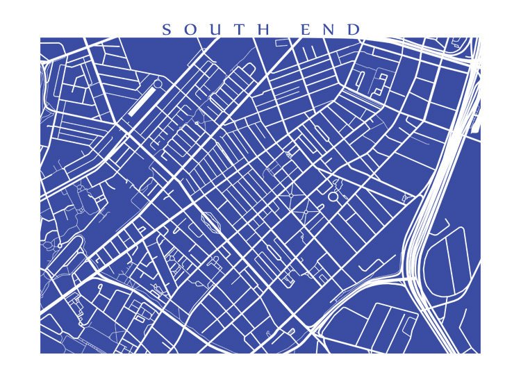 Mapa del barrio de South End, Boston. El color de ejemplo que se muestra es el cielo nocturno antártico.
