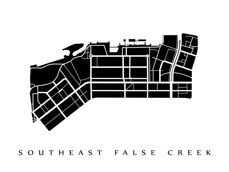 Mapa del vecindario del sureste de False Creek, Vancouver. El color de ejemplo que se muestra es el cielo nocturno antártico.