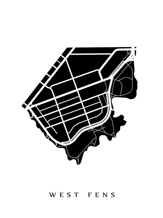 West Fens, mapa del barrio de Boston. El color de ejemplo que se muestra es el cielo nocturno antártico.