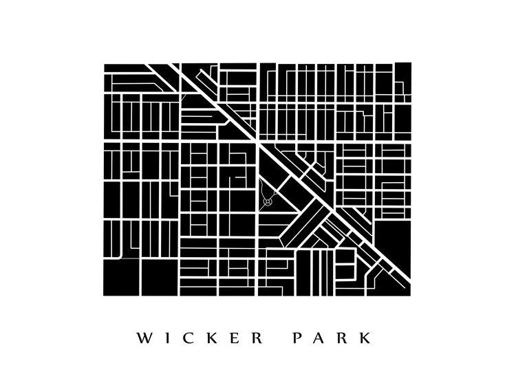 Wicker Park, mapa del barrio de Chicago. El color de ejemplo que se muestra es el cielo nocturno antártico.