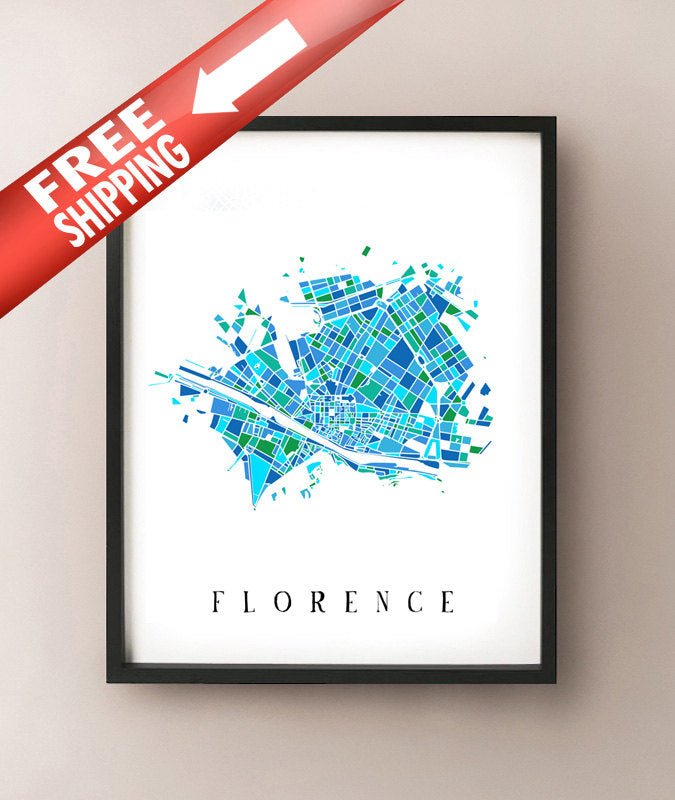 Artistically coloured art map of Florence, Italy.