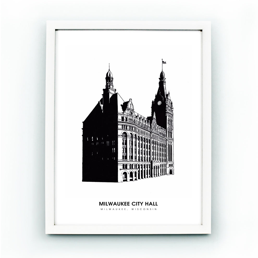 Drawing of Milwaukee City Hall in Milwaukee, Wisconsin.