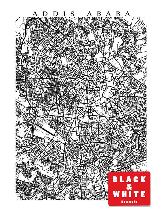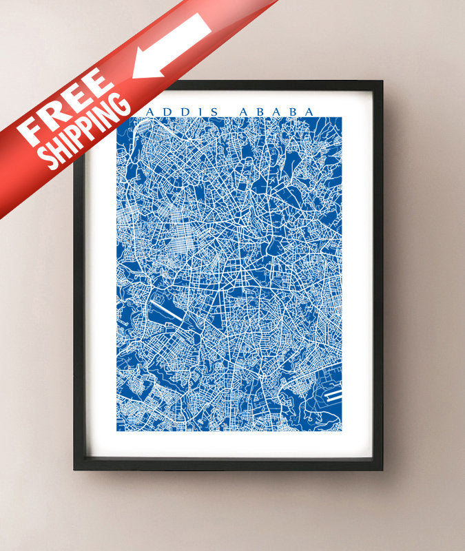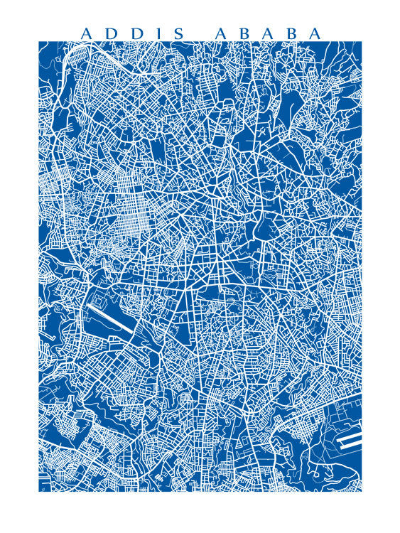 Addis Ababa, Ethiopia map. Example colour shown is Default Blue.