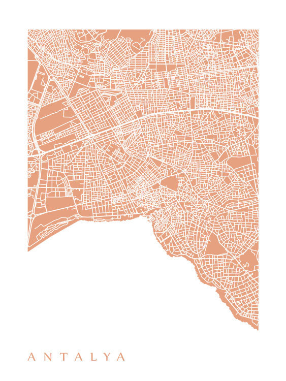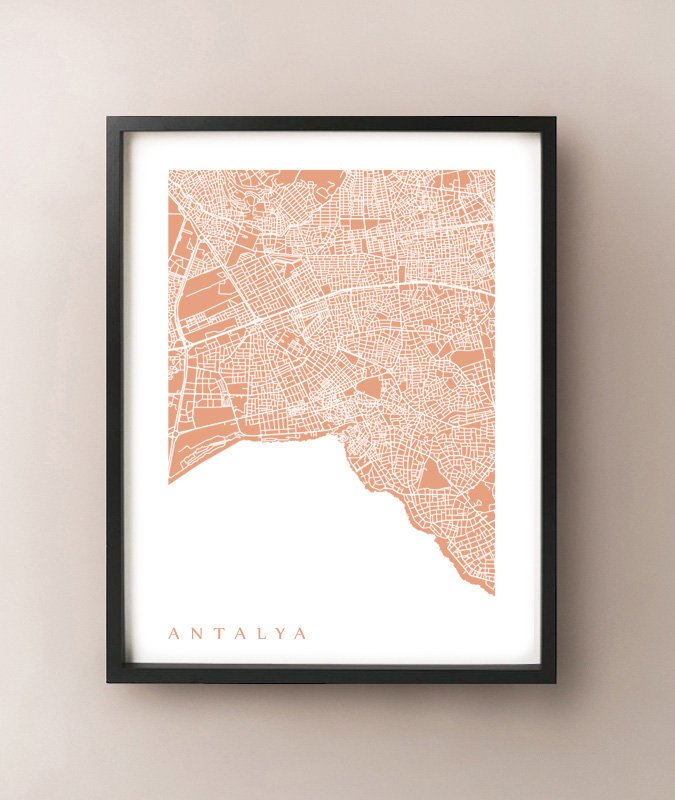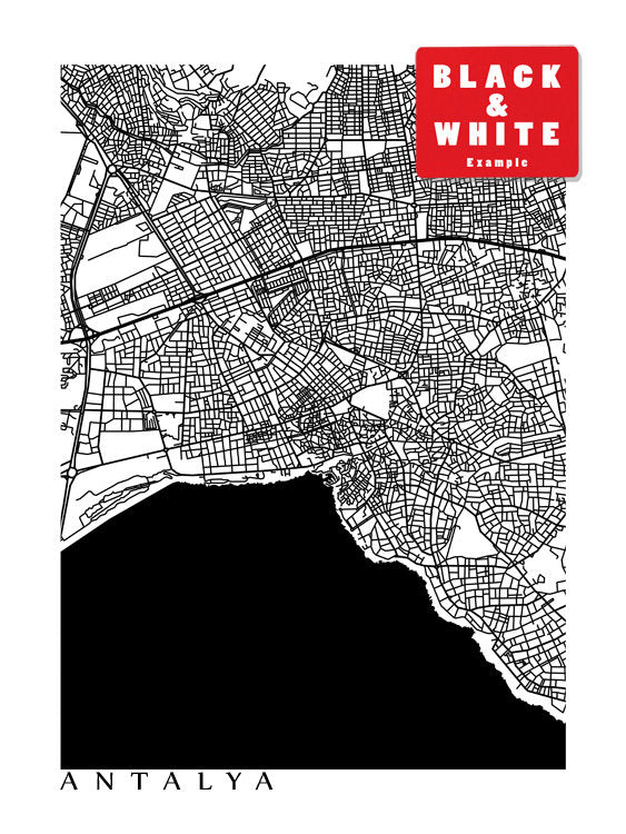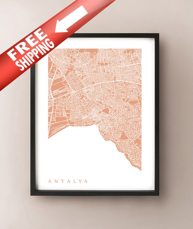 Map of Antalya, Turkey. Example colour shown is Myrtle Beach.