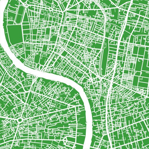 Map of Bangkok, Thailand. Example colour shown is Irish Fields.