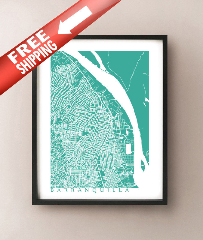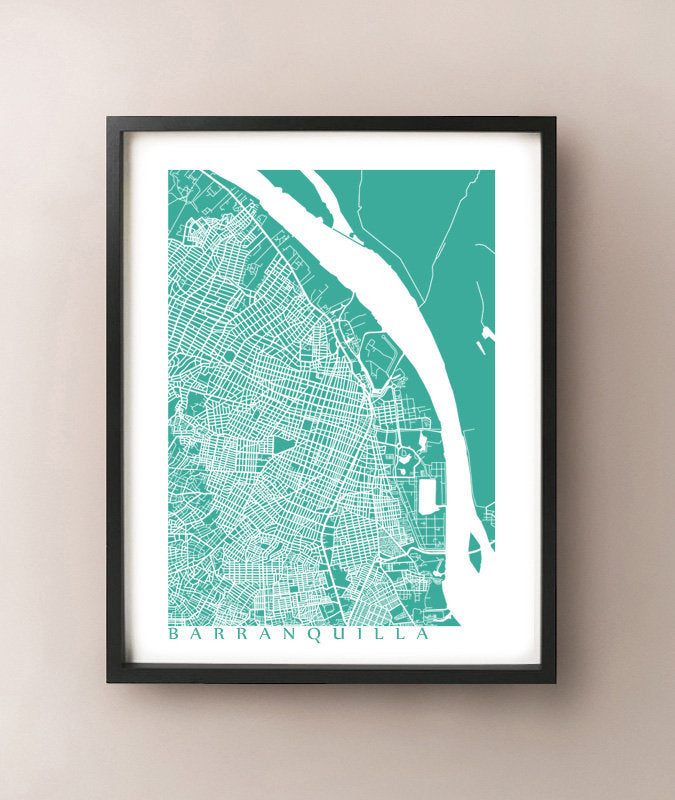 Map of Barranquilla, Colombia. Example colour shown is Muzo Emerald.