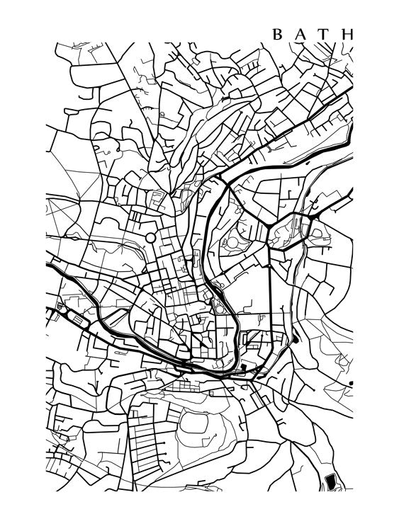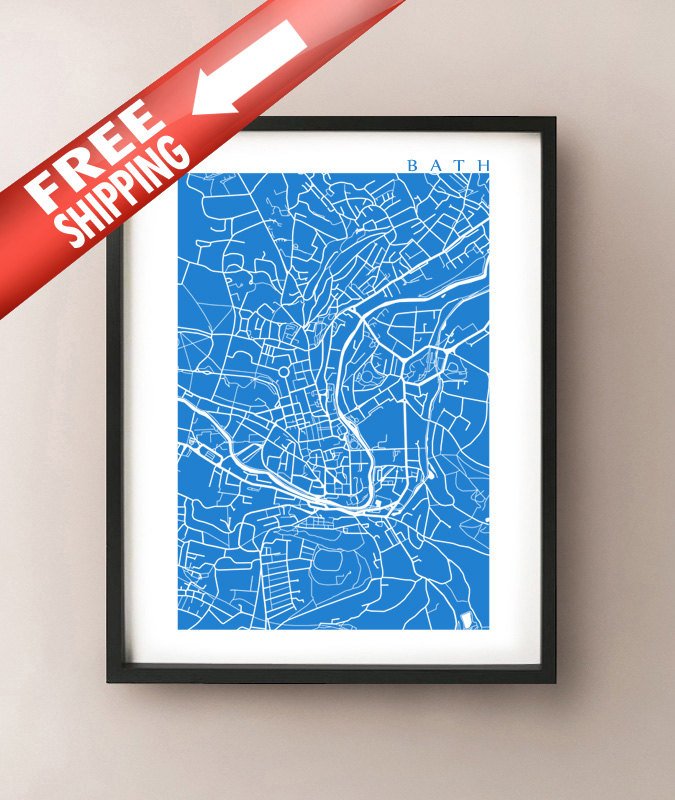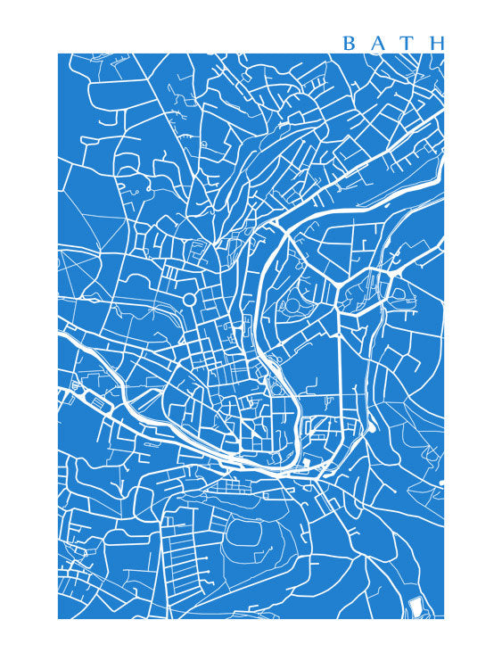 Map of Bath, England, UK. Example colour shown is English Cerulean.