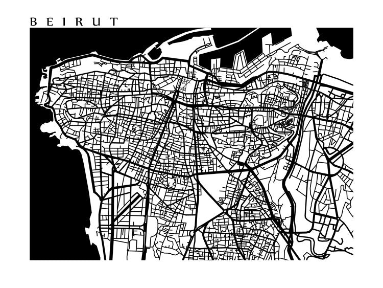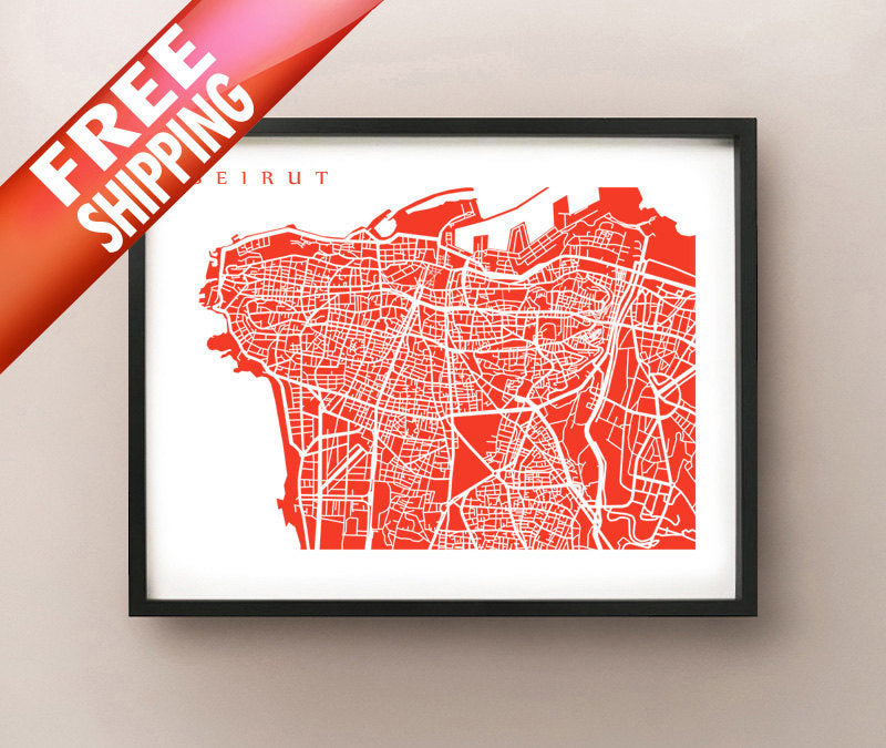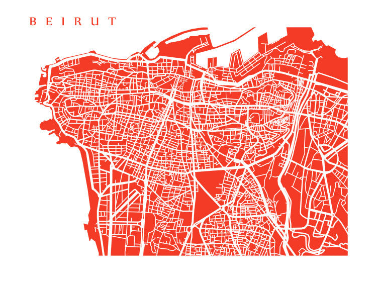 Map of Beirut, Lebanon. Example colour shown is Cannes Red Carpet.