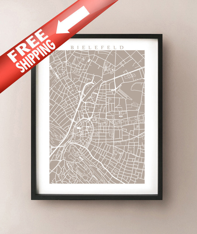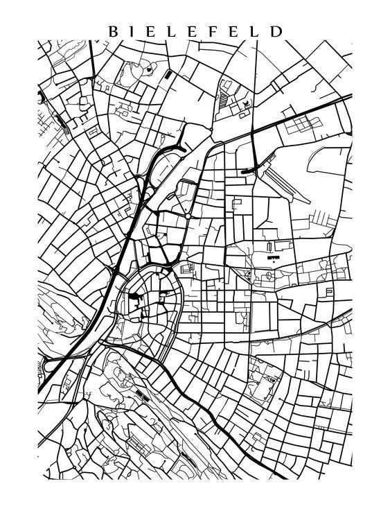 Map of Bielefeld, Germany. Example colour shown is Long Beach.