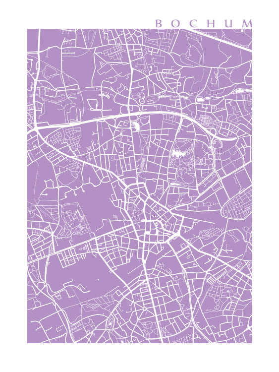 Map of Bochum, Germany. Example colour shown is Cape Verde Lavender.