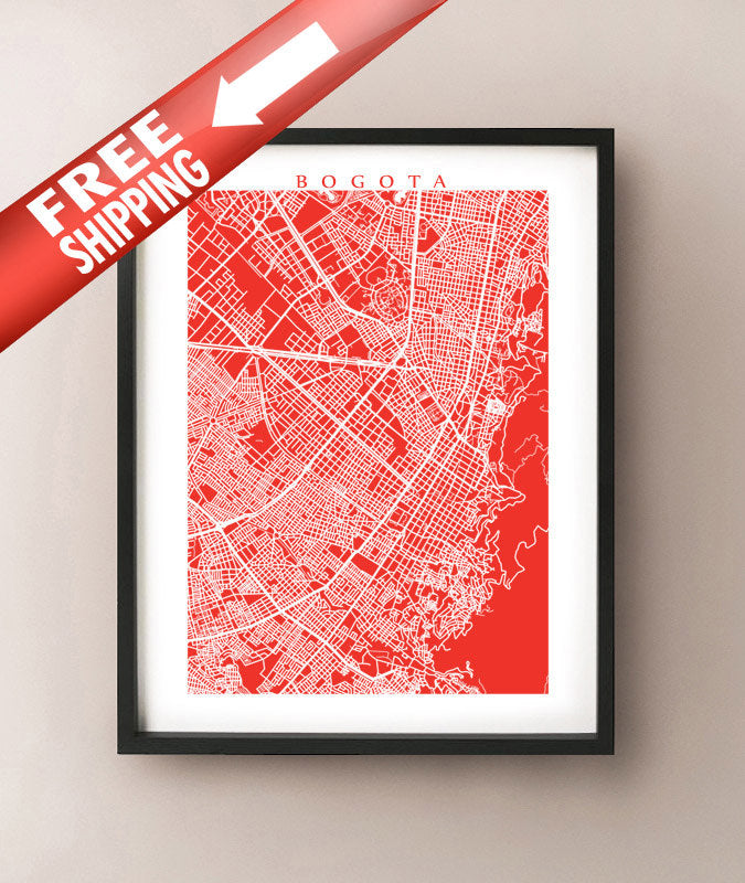 Map of Bogota, Colombia. Example colour shown is Flanders Poppy.