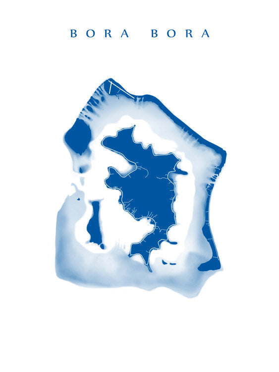Map of Bora Bora, French Polynesia. Example colour shown is Default Blue.