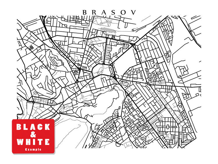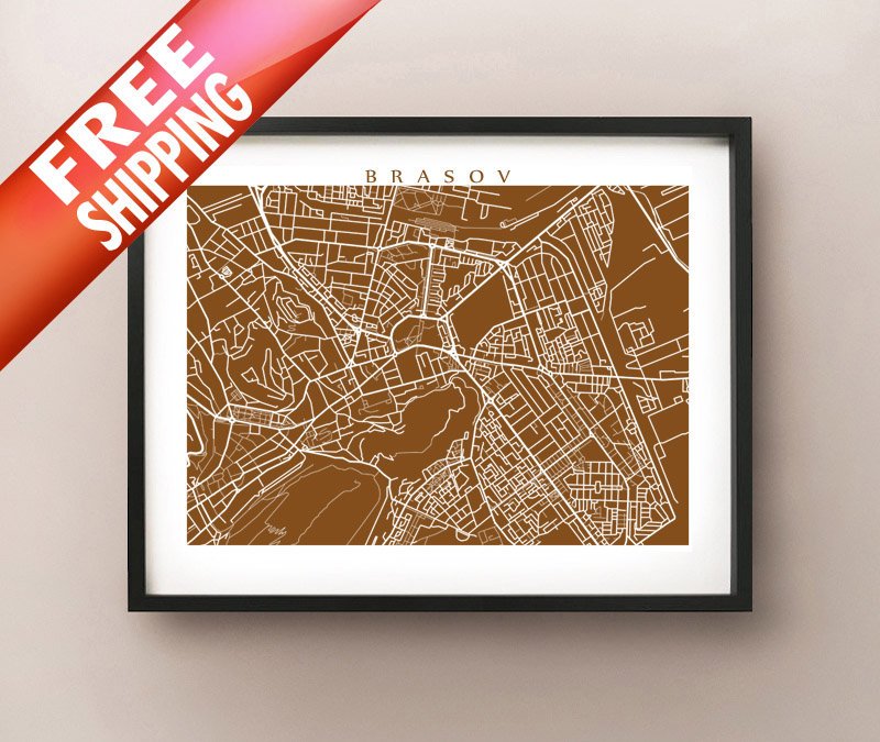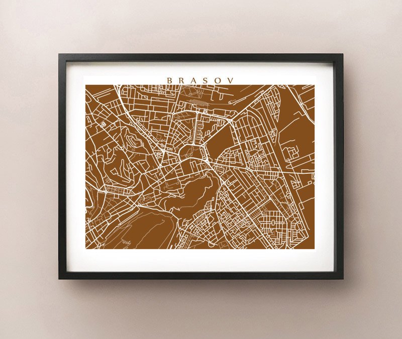 Map of Brasov, Romania. Example colour shown is Moroccan Storm.