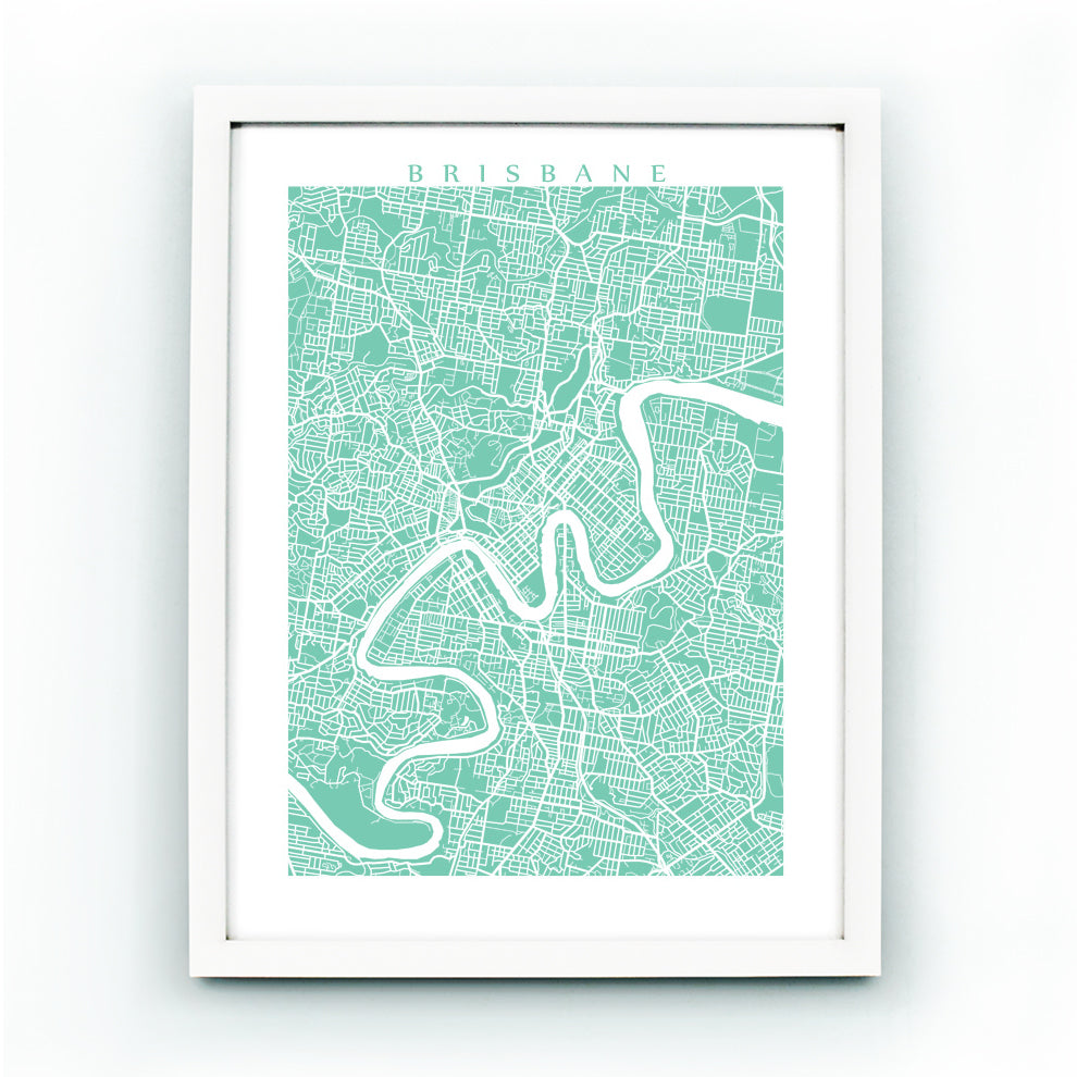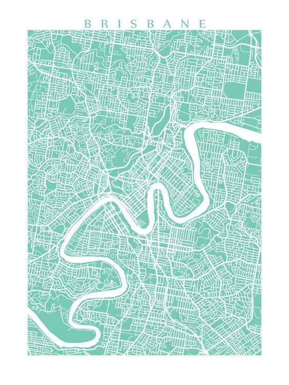 Map of Brisbane, Australia. Example colour shown is Lake Louise.