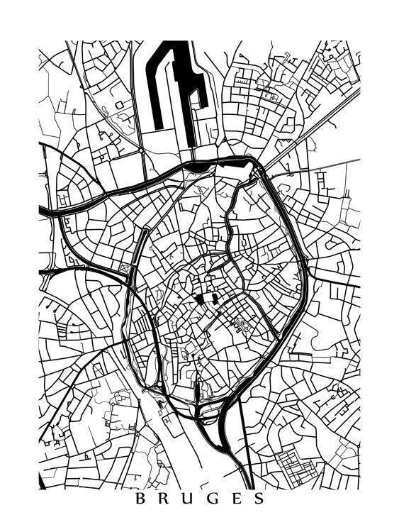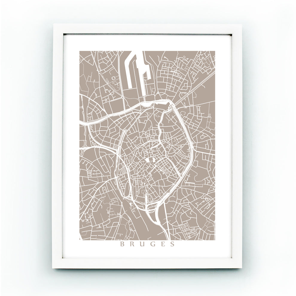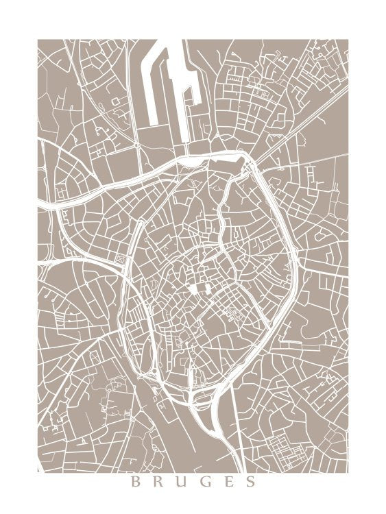 Map of Bruges, Belgium. Example colour shown is Long Beach.
