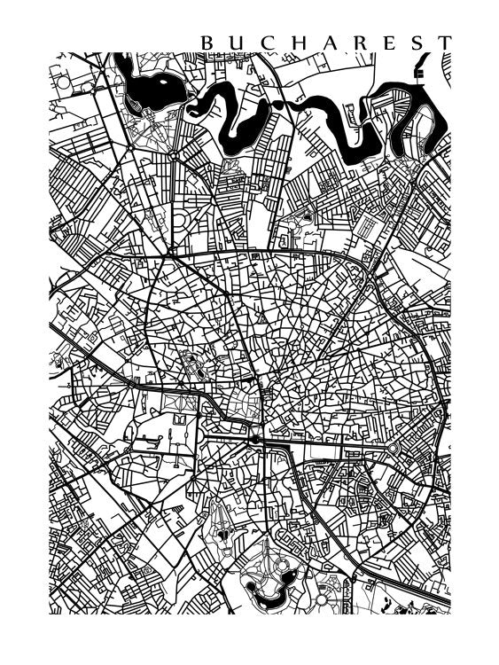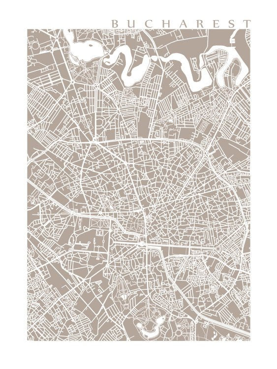 Map of Bucharest, Romania. Example colour shown is Long Beach.