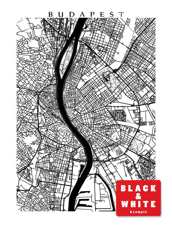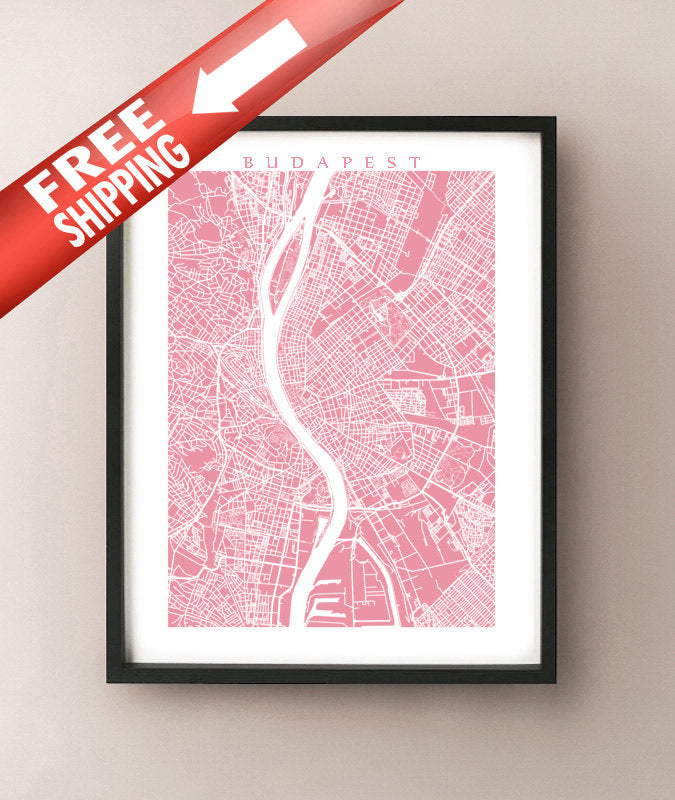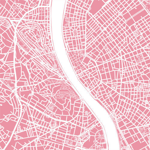 Map of Budapest, Hungary. Example colour shown is Victorian Rose.