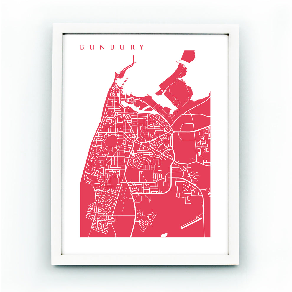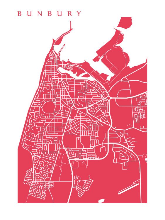 Map of Bunbury, Australia. Example colour shown is Valencian Crimson.