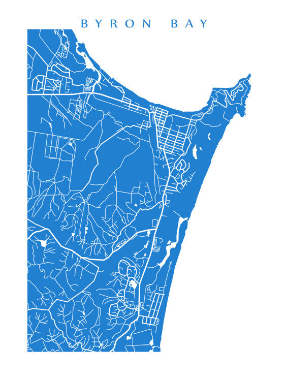 Map of Byron Bay, Australia. Example colour shown is English Cerulean.