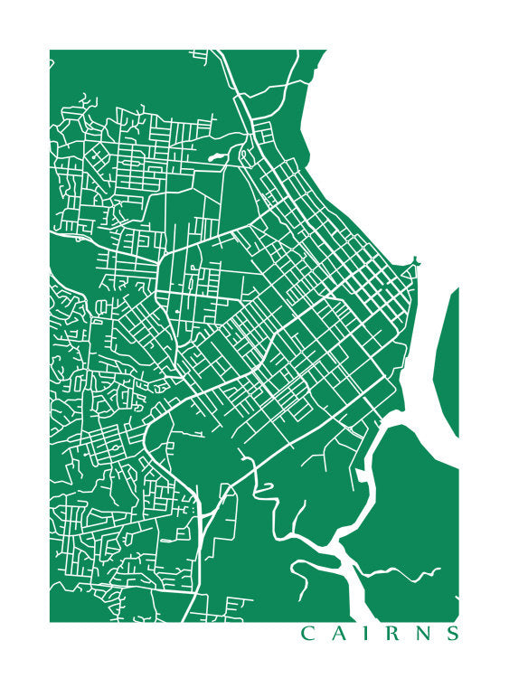 Map of Cairns, Australia. Example colour shown is Amazon Rainforest.