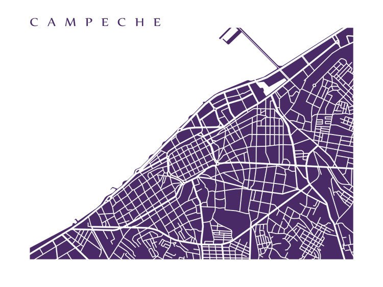 Map of Campeche, Mexico. Example colour shown is Tyrian Purple.