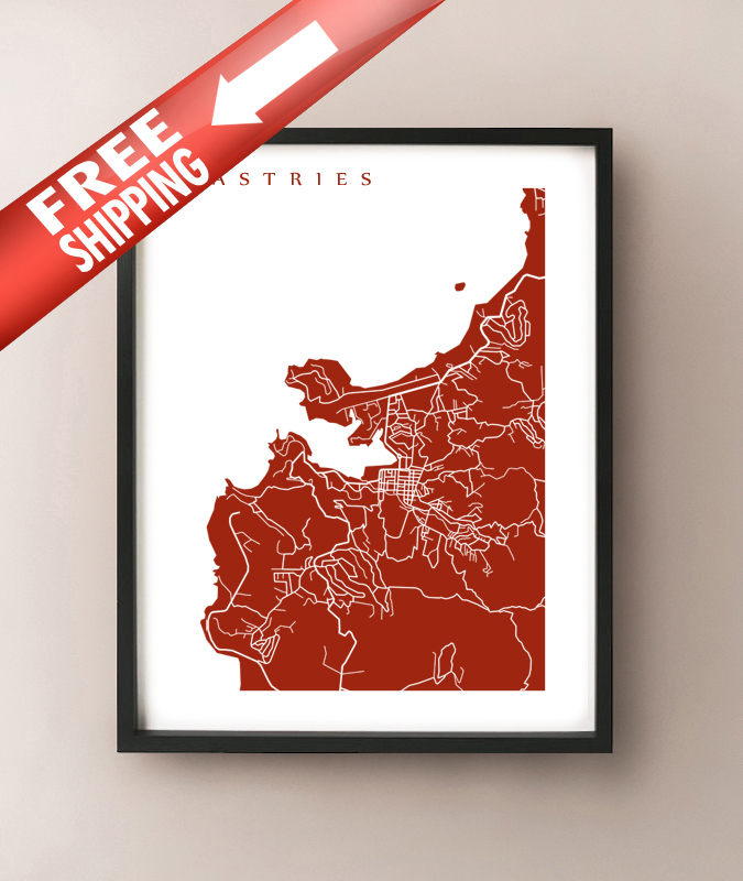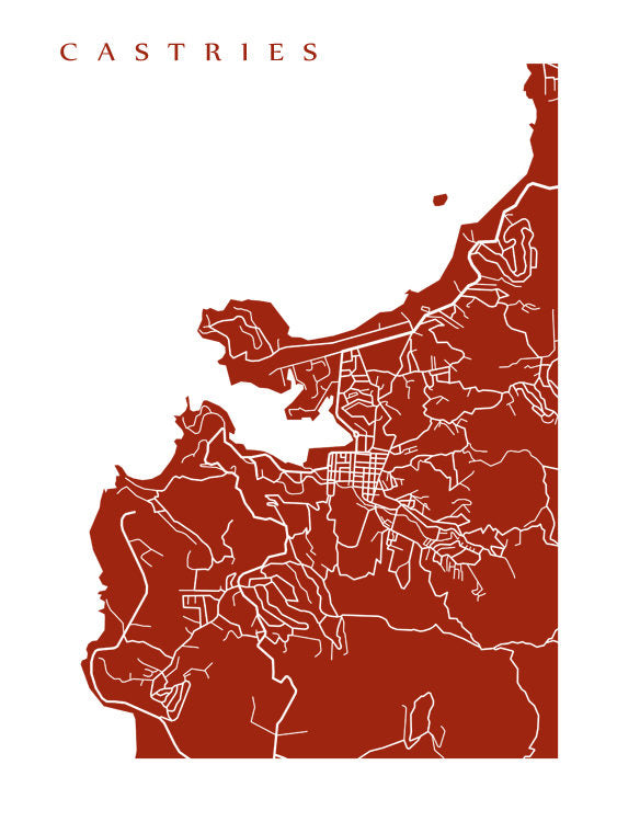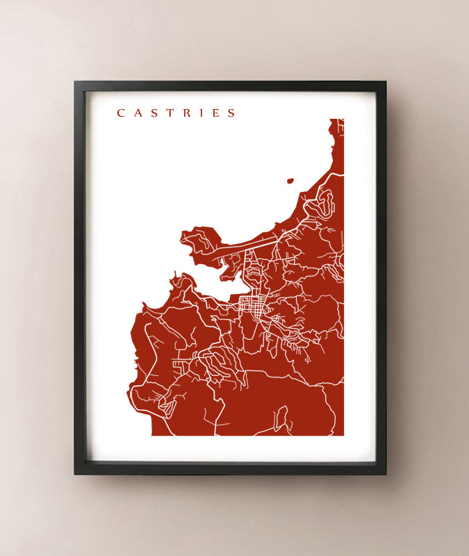Map of Castries, St. Lucia. Example colour shown is Greek Clay.