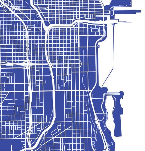 Map of Chicago, Illinois, USA. Example color shown is Egyptian Cobalt.