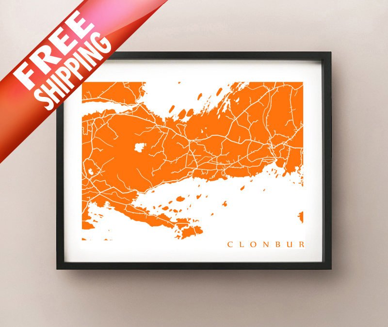 Map of Clonbur, Ireland. Example colour shown is Florida Orange.
