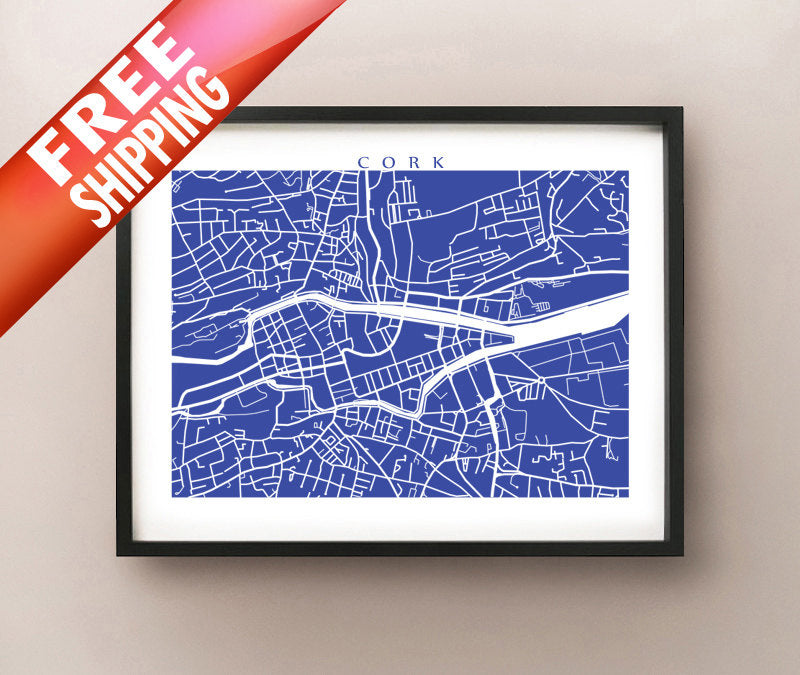 Map of Cork, Ireland. Example colour shown is Egyptian Cobalt.
