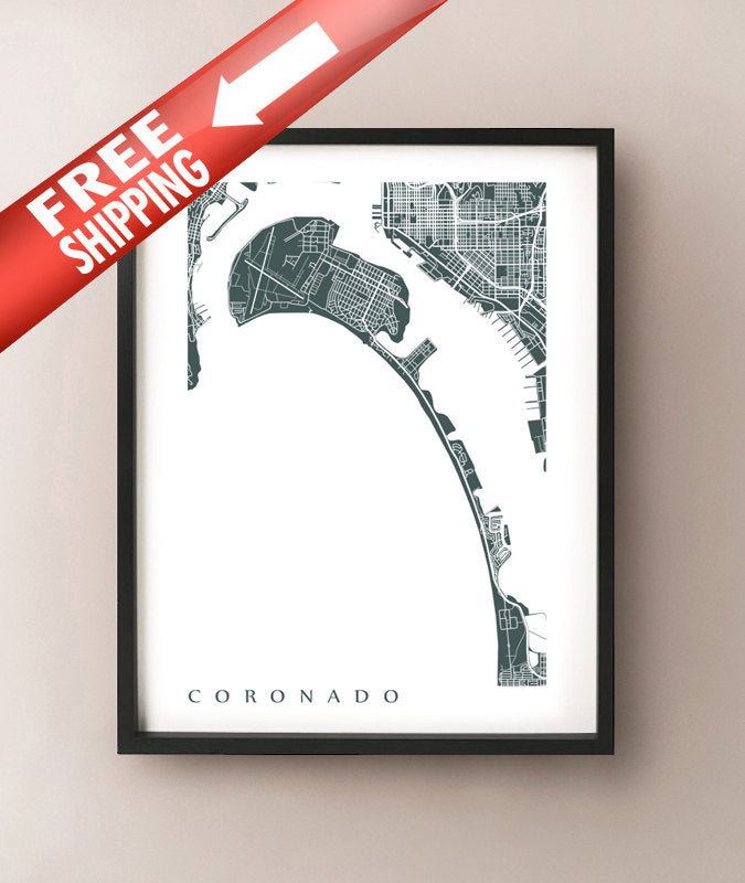 Map of Coronado, California, USA. Example color shown is Chinese Holly.