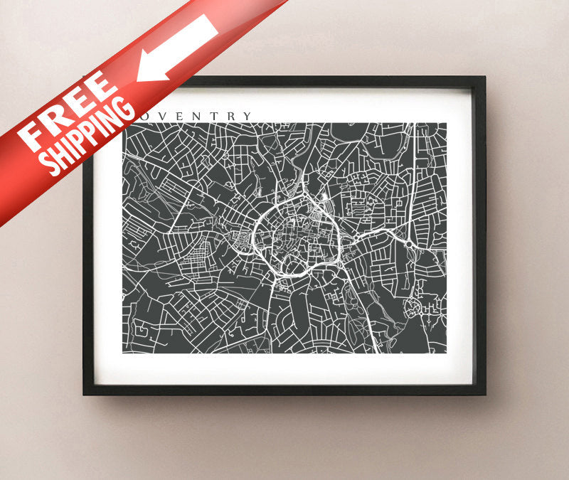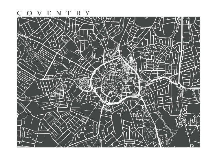 Map of Coventry, England, UK. Example colour shown is East LA Interchange.