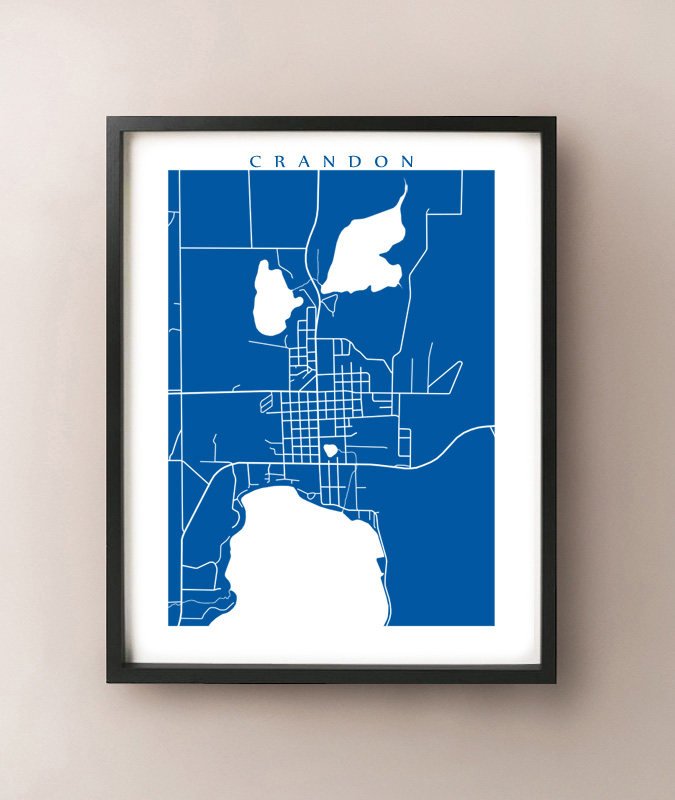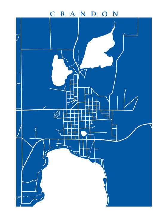 Map of Crandon, Wisconsin, USA. Example color shown is Default Blue.