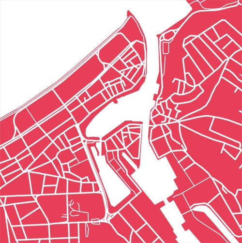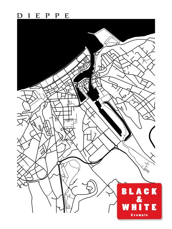 Map of Dieppe, France. Example colour shown is Valencian Crimson.